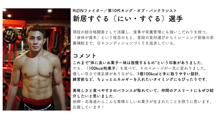 そこに藤田先生との出会いで聞いた、「100kcal和菓子はアスリートにとって優位性がある」という言葉。